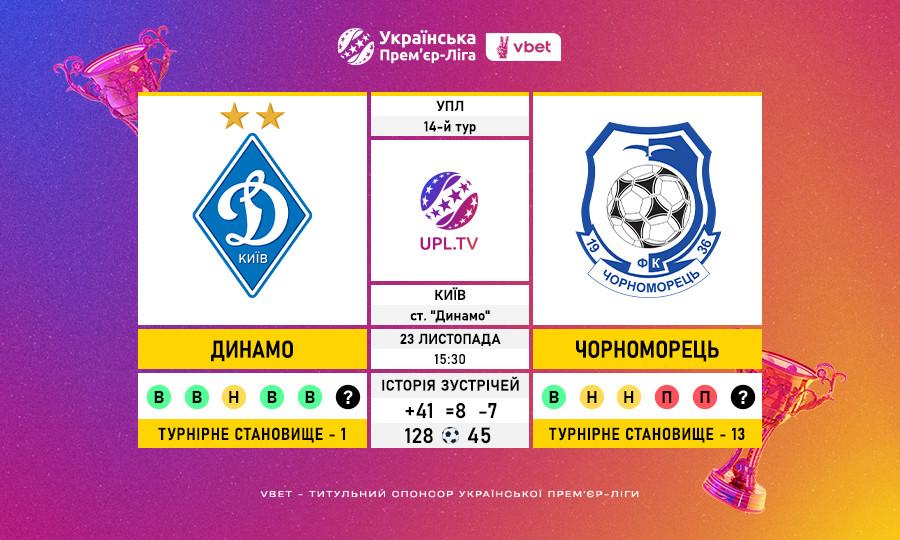Матч 14-го тура Украинской Премьер-лиги "Динамо" - "Черноморец": статистическое превью