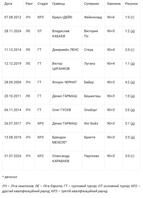 До речі, серед гравців «Динамо» пізніше Кабаєва забивав лише Браун Ідейє у зустрічі з «Фейєноордом» у третьому кваліфікаційному раунді Ліги чемпіонів-2012/13 – на 90+6-й хвилині. А у Лізі Європи лише луганчанин Дмитро Іванісеня 29 жовтня 2020 року у домашньому поєдинку «Зорі» з «Брагою» - також на 90+6-й хвилині.