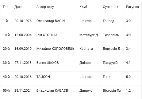 Ювілейні домашні голи «джокерів» українських клубів у Лізі Європи (Кубку УЄФА)