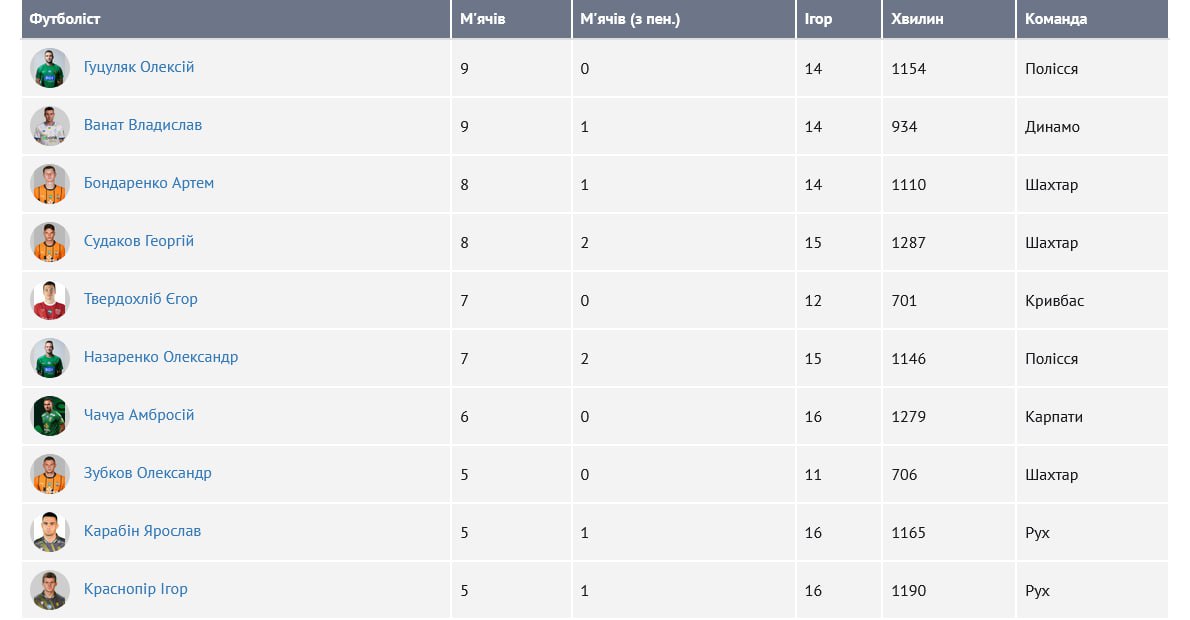 Это форвард "Динамо" Владислав Ванат с 9-ю голами и Игорь Краснопир из "Руха" с 5-ю забитыми мячами.