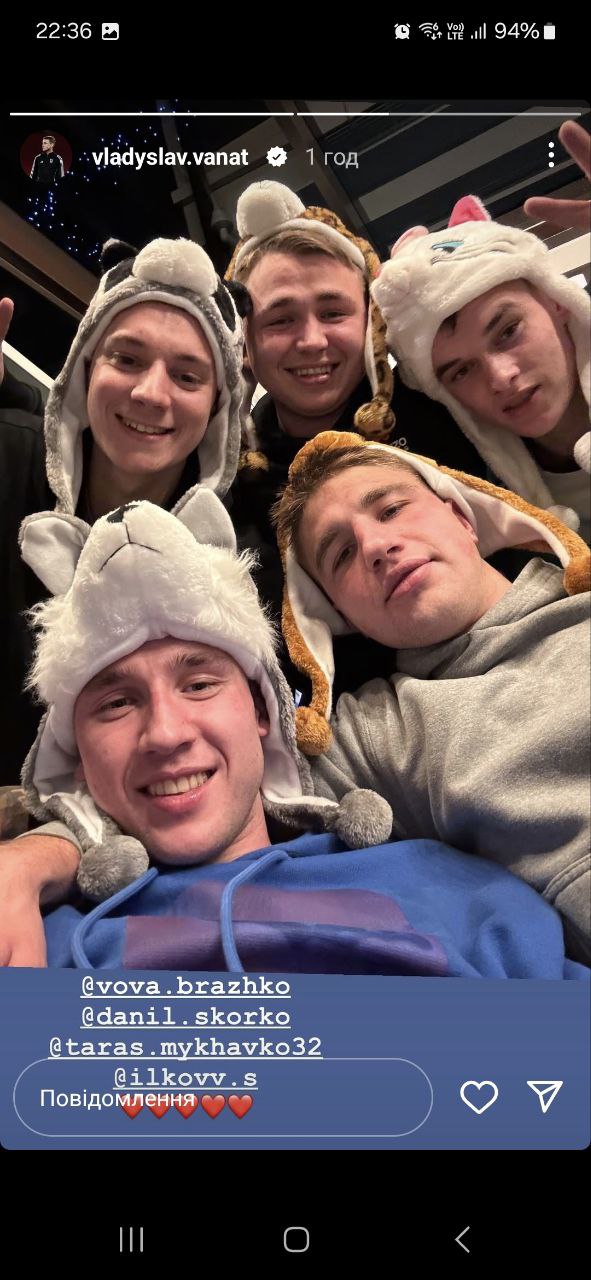 Нападающий "Динамо" Владислав Ванат показал в своем Instagram фото с отдыха в Буковеле вместе со своими партнерами по команде Владимиром Бражко и Тарасом Михавко, также экс-динамовцем Даниилом Скорко.