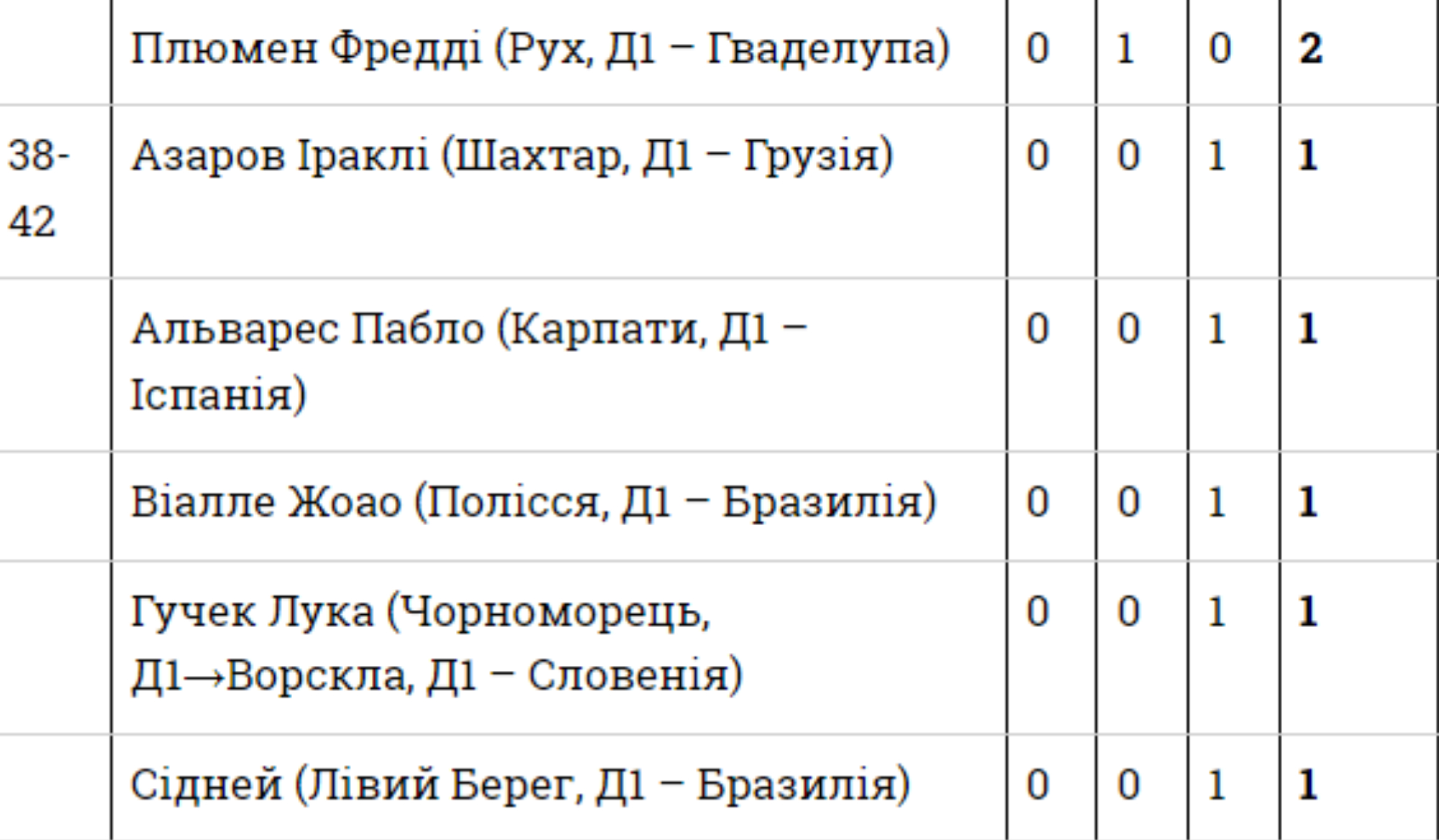 - Ібрахім Кане (Малі – Ворскла) — 43 (6-6-13)