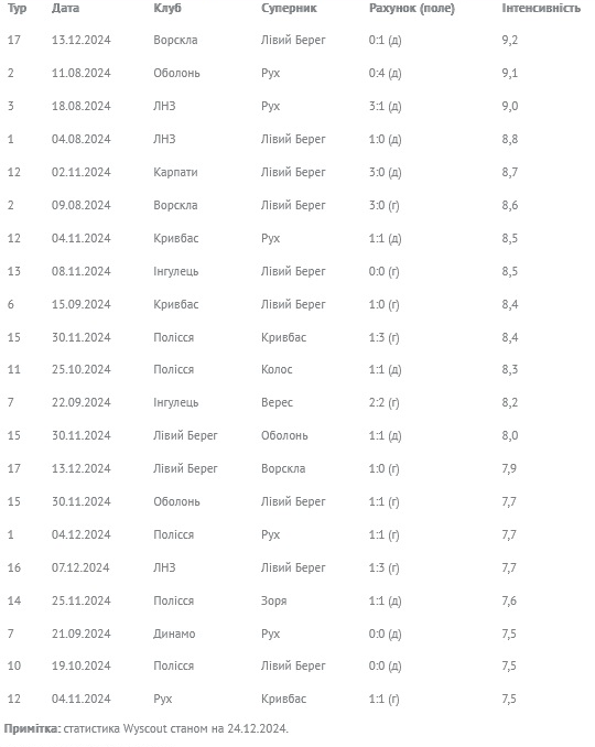 В матчі 17-го туру з «Лівим Берегом» футболісти «Ворскли» підняли планку рекорду сезону-2024/25 за інтенсивністю єдиноборств в Чемпіонаті УПЛ до відмітки 9,2. Інтенсивність єдиноборств у словнику Wyscout — це кількість дуелей, підкатів та перехоплень на хвилину володіння м’ячем суперника. Чим вище показник — тим вище інтенсивність спроб повернення м’яча.