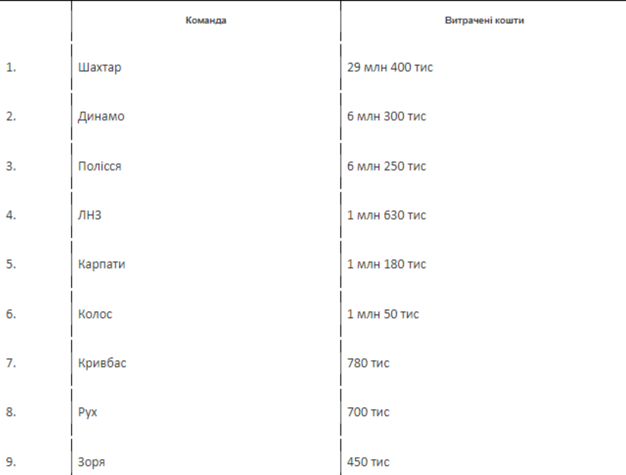"Динамо" расположилось на втором месте, но потратило почти в пять раз меньше "горняков". Все данные находятся в открытом доступе на сайте Transfermarkt.