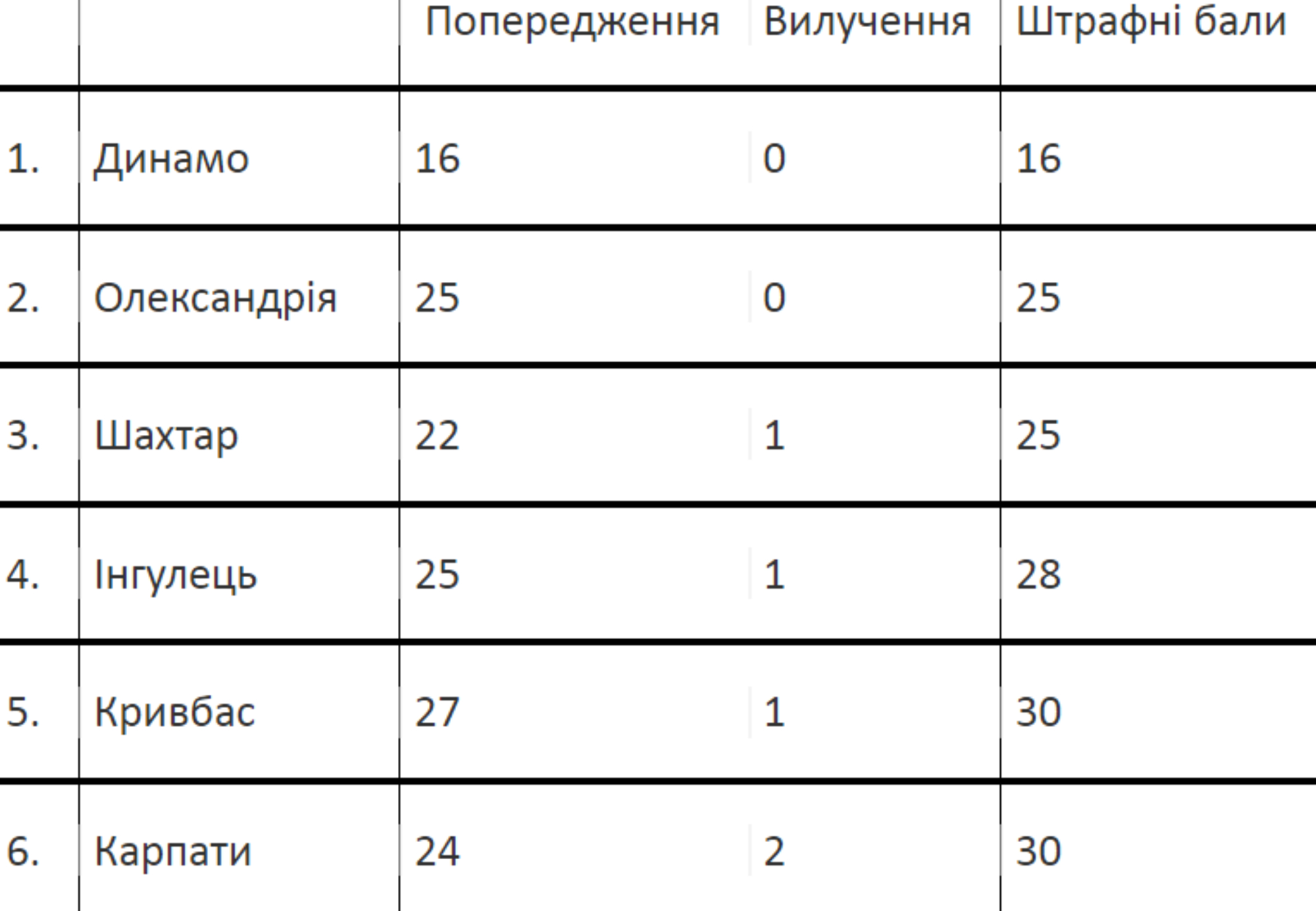 "Динамо" с большим отрывом - самая дисциплинированная команда УПЛ в этом сезоне