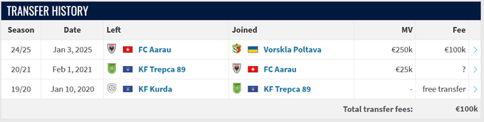 Авторитетный портал Transfermarkt утверждает, что сумма трансфера составила 100 тысяч евро.