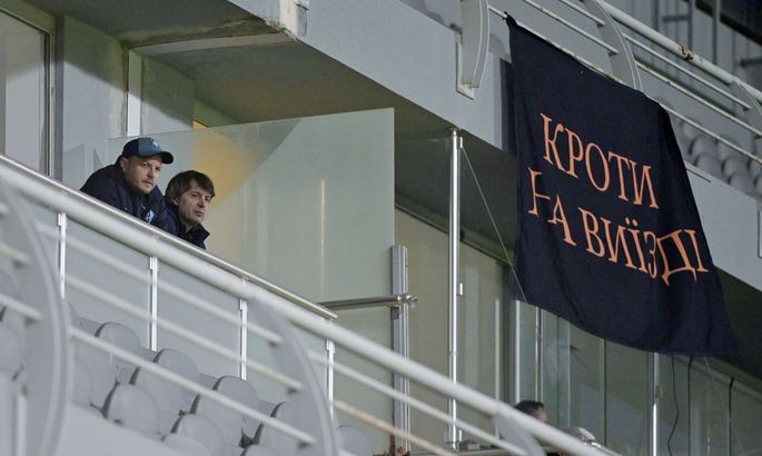 Главный тренер "Динамо" Александр Шовковский и его ассистент Олег Гусев сегодня были на футболе.