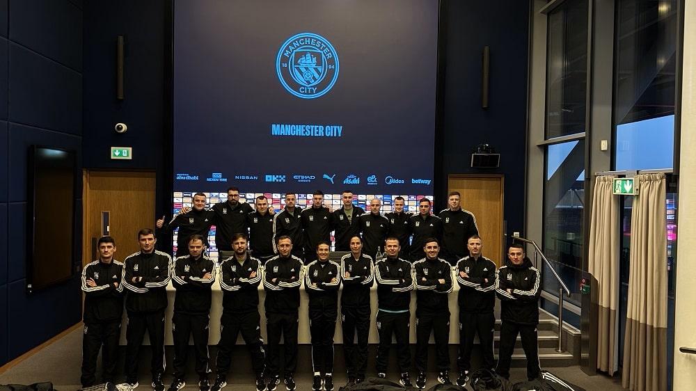 У межах програми стажування 20 українських тренерів уже кілька днів проходять теоретичне та практичне навчання на базі «Манчестер Сіті», де тренується перша команда клубу.
