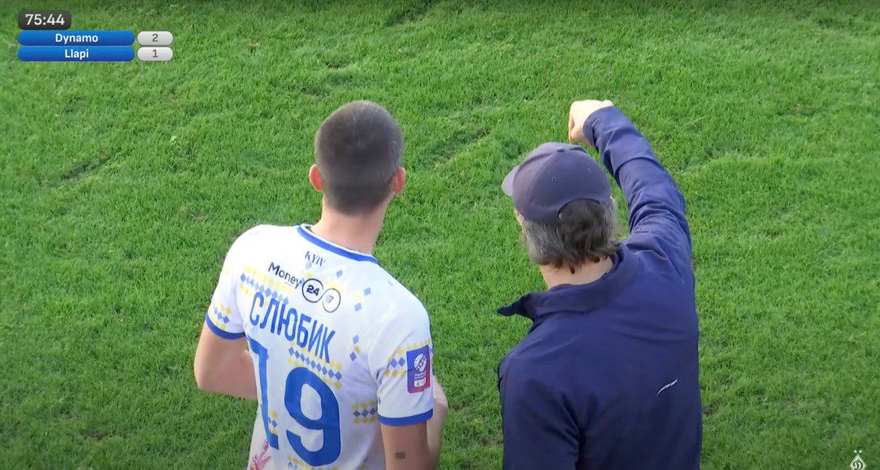 Грузинский защитник Гиорги Мерапишвили сегодня вышел на замену в товарищеском матче "Динамо" против "Ллапи" в футболке с фамилией Богдана Слюбика.