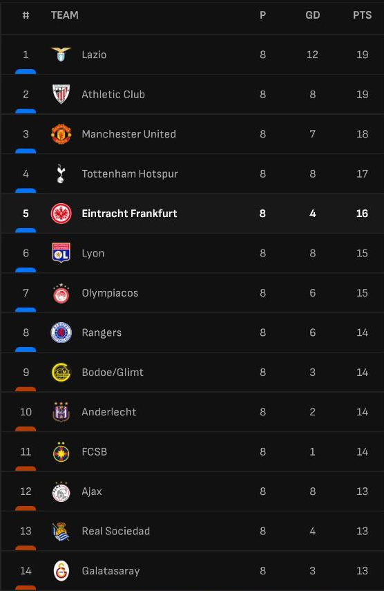 Предлагаем Вашему вниманию итоговую турнирную таблицу основного раунда Лиги Европы.