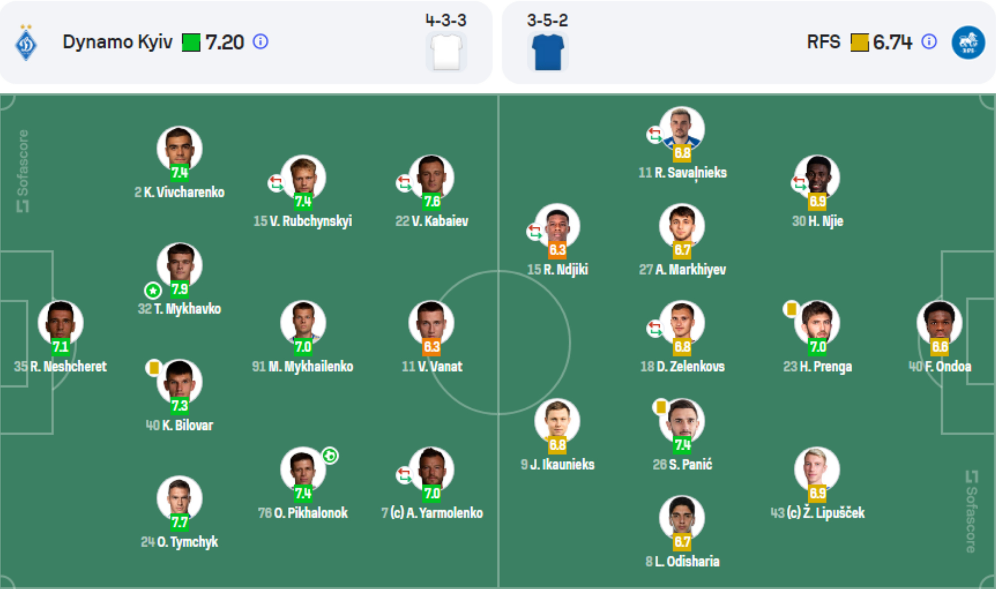 Игроки "Динамо" получили оценки за матч против РФШ от SofaScore и WhoScored