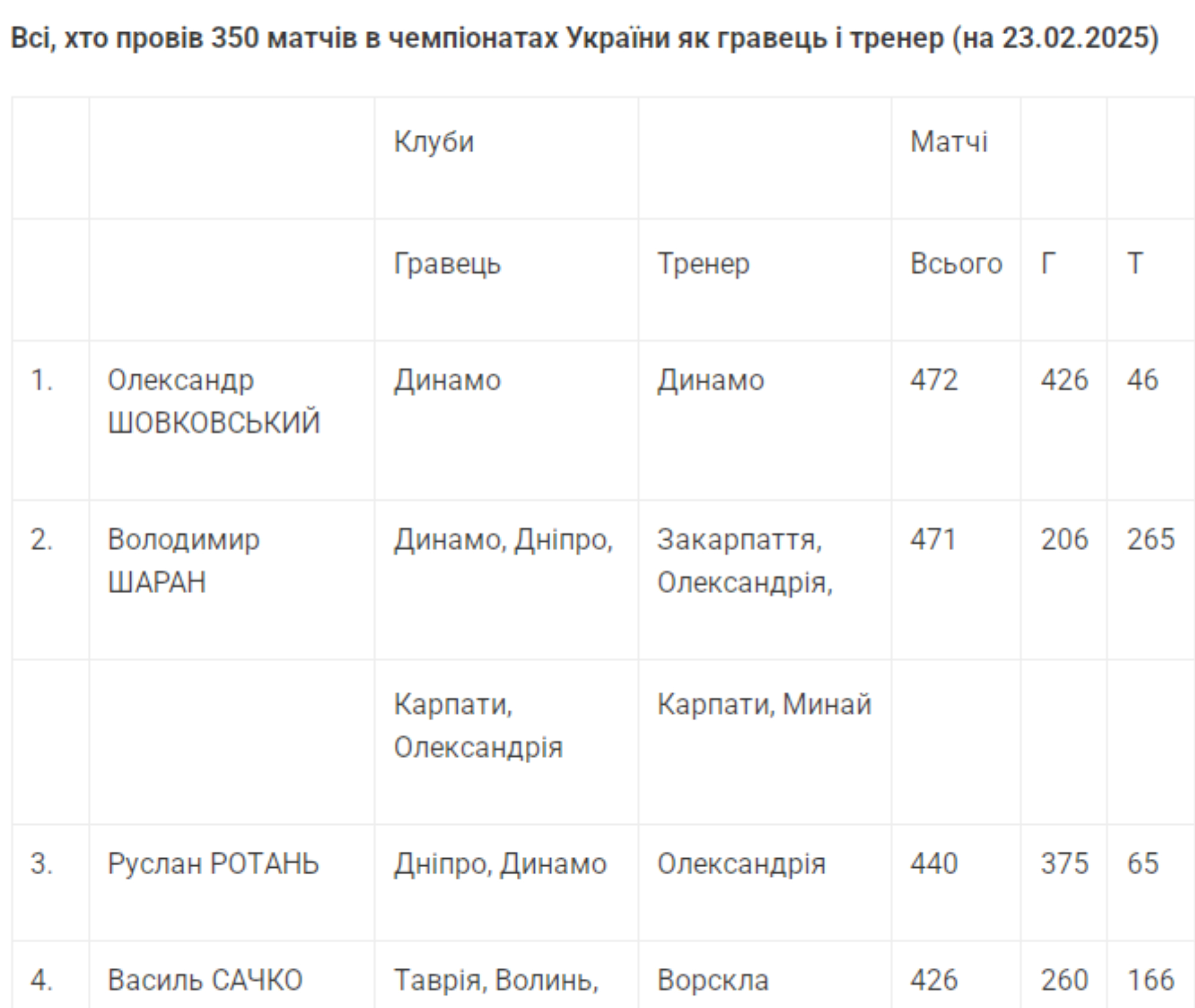 Кстати, кроме Шовковского, в топ-10 в номинации "игрок-тренер" входят еще четыре наставника клубов УПЛ-2024/25. Это Руслан Ротань – 440 матчей, Юрий Вернидуб – 398, Сергей Шищенко – 386 и Юрий Максимов – 378.