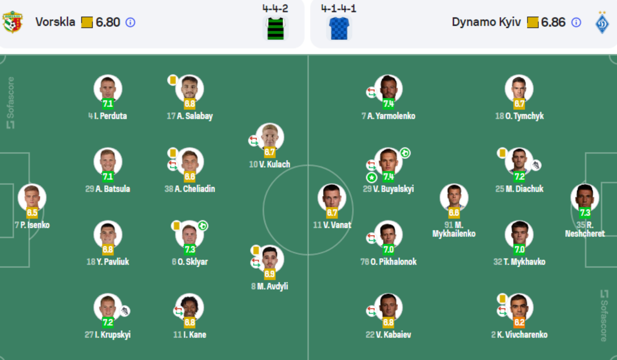 Ярмоленко и Буяльский получили самые высокие оценки в "Динамо" за игру с "Ворсклой" от SofaScore