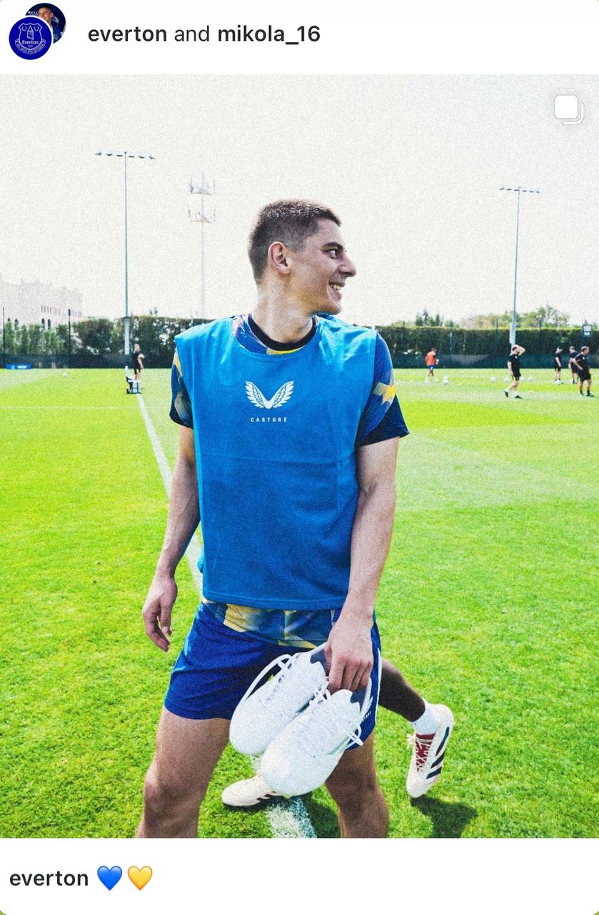 Пресс-служба английского "Эвертона" разместила в собственном инстаграме фото Виталия Миколенко.