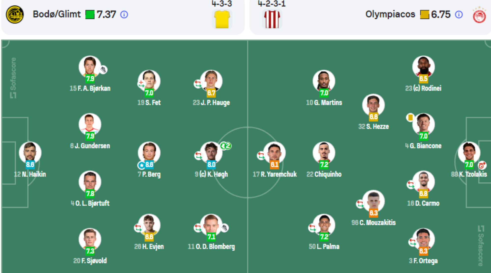 Яремчук получил худший балл от SofaScore среди всех игроков матча "Буде-Глимт" - "Олимпиакос"