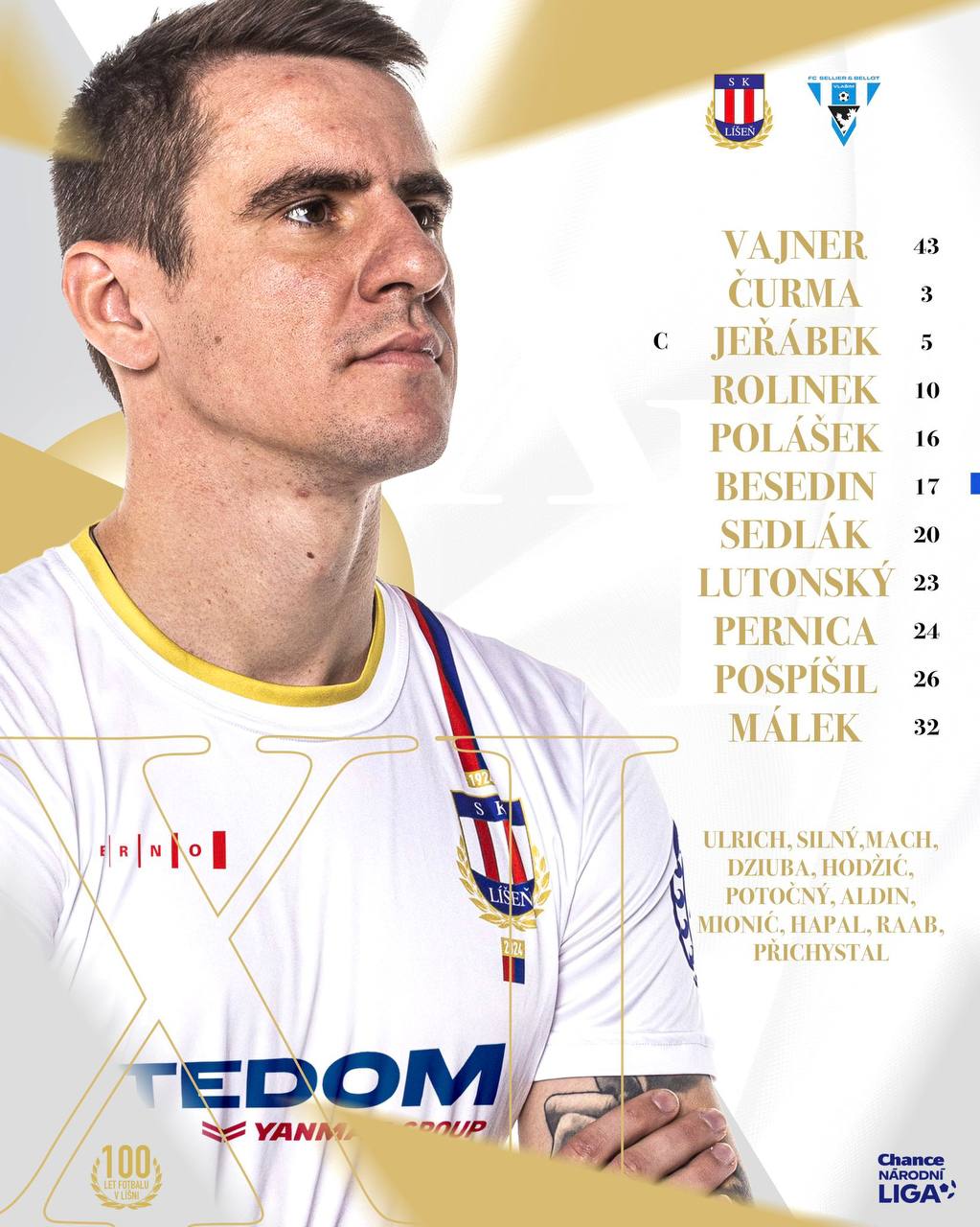 Бывший нападающий "Динамо" Артем Беседин впервые выйдет в стартовом составе "Лишени" на матч второго дивизиона Чехии против "Селье и Белло Влашим".