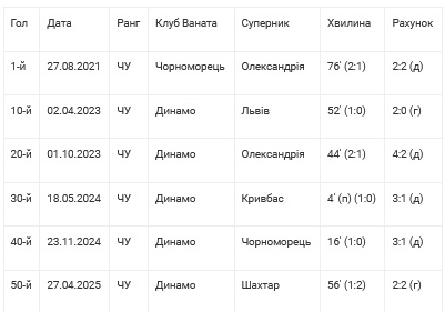 Ювілейні голи у клубній кар'єрі Владислава Ваната