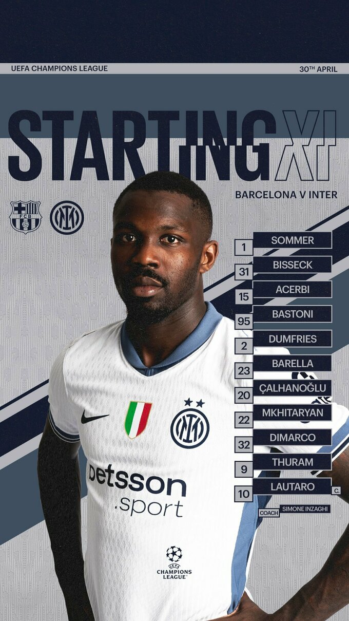 "Интер": Зоммер, Думфрис, Бастон, Ачерби, Биссек, Димарко, Мхитарян, Чалханоглу, Барелла, Тюрам, Мартинес.