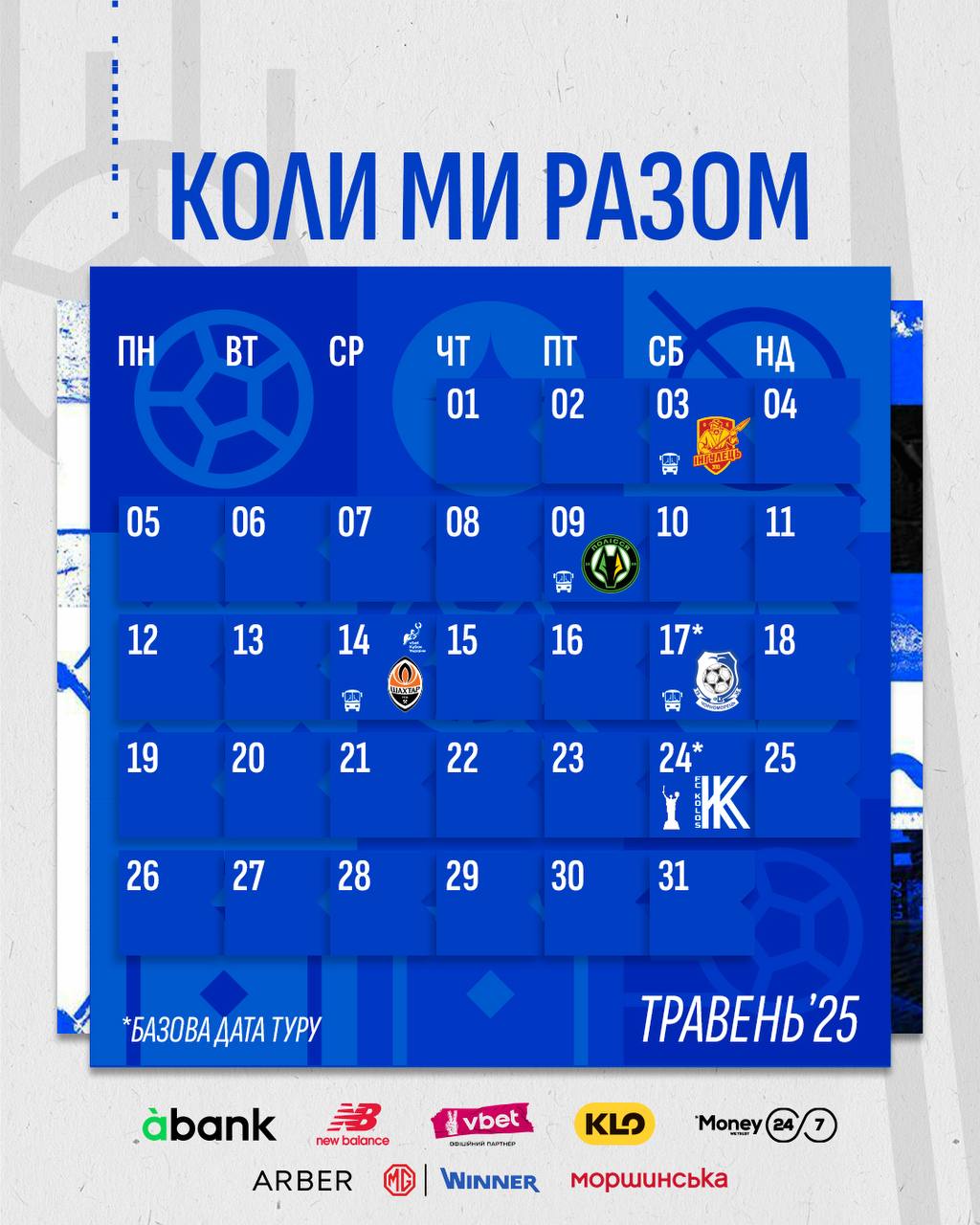 Все начнется 3 мая выездным матчем против "Ингульца", а 9 мая состоится игра с "Полесьем".