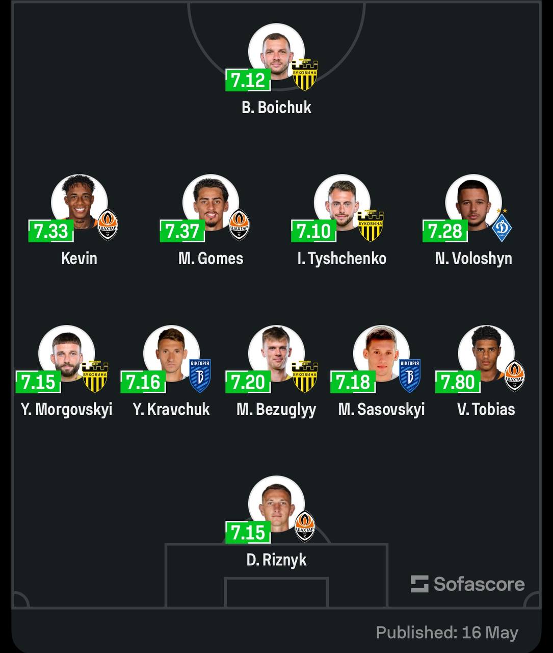Статистический портал SofaScore составил символическую сборную розыгрыша Кубка Украины в этом сезоне.