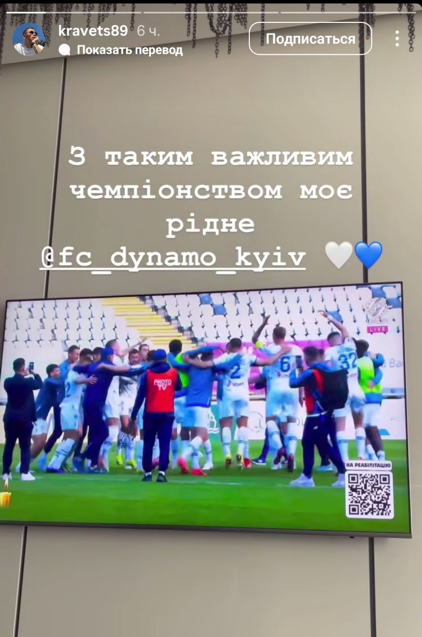 Бывший нападающий "Динамо" Артем Кравец в своем Instagram поздравил киевлян с чемпионством.