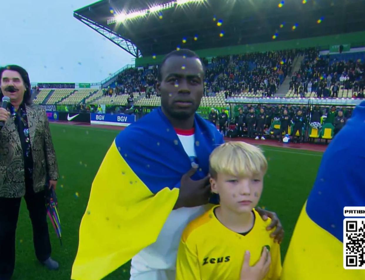 Легионер "Кривбасса" проводит последний матч в Украине. Он держал руку на сердце во время исполнения гимна
