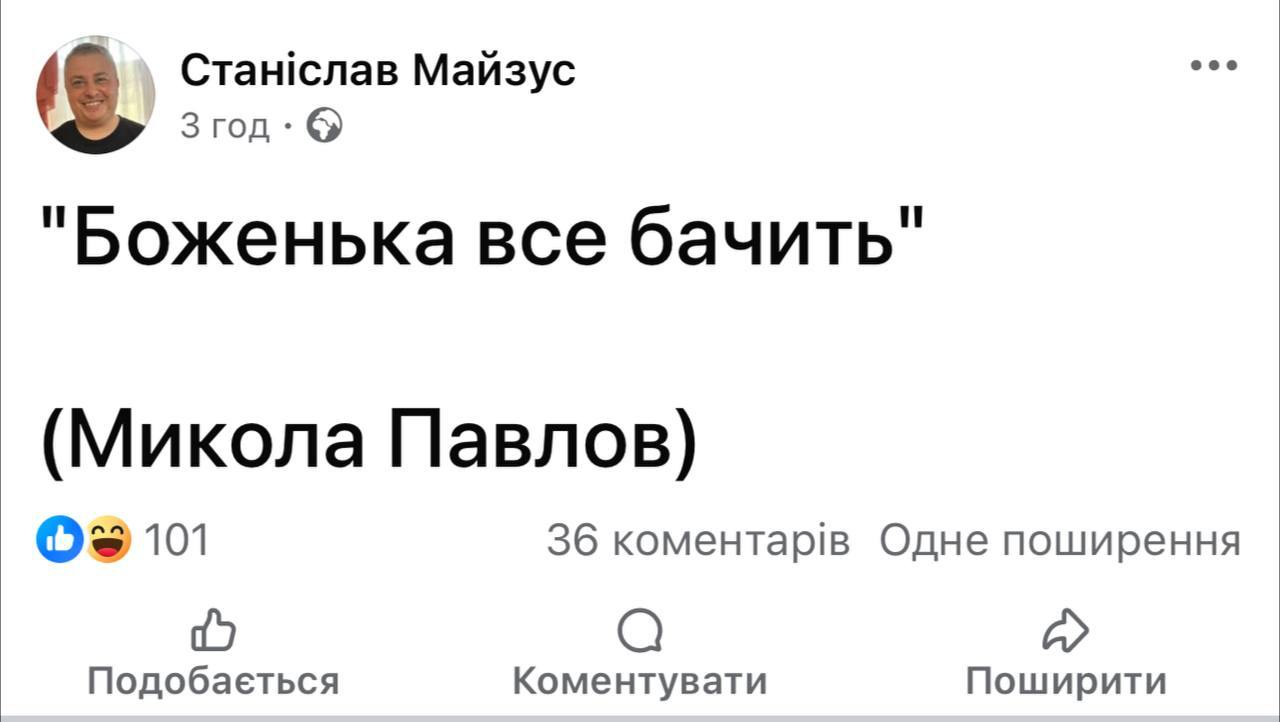 "Боженька все видит (Николай Павлов)", - написал Майзус в соцсети.