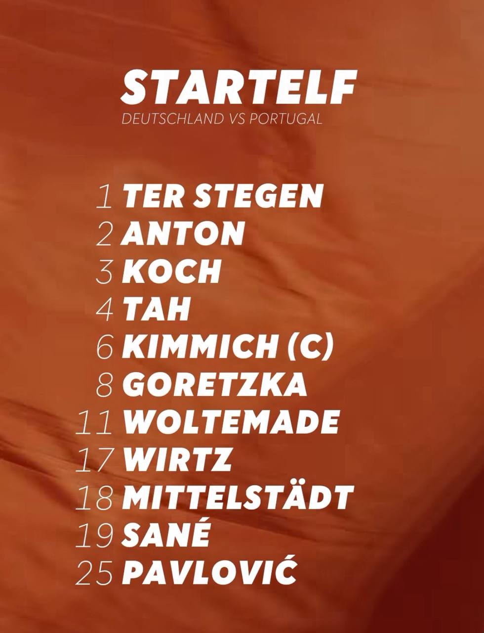Германия: тер Штеген, Антон, Та, Кох, Киммих, Павлович, Горецка, Миттельштадт, Сане, Вирц, Вольтемаде