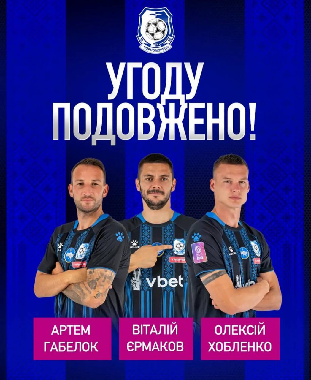 Такие же соглашения с "Черноморцем" подписали Артём Габелок и Виталий Ермаков.