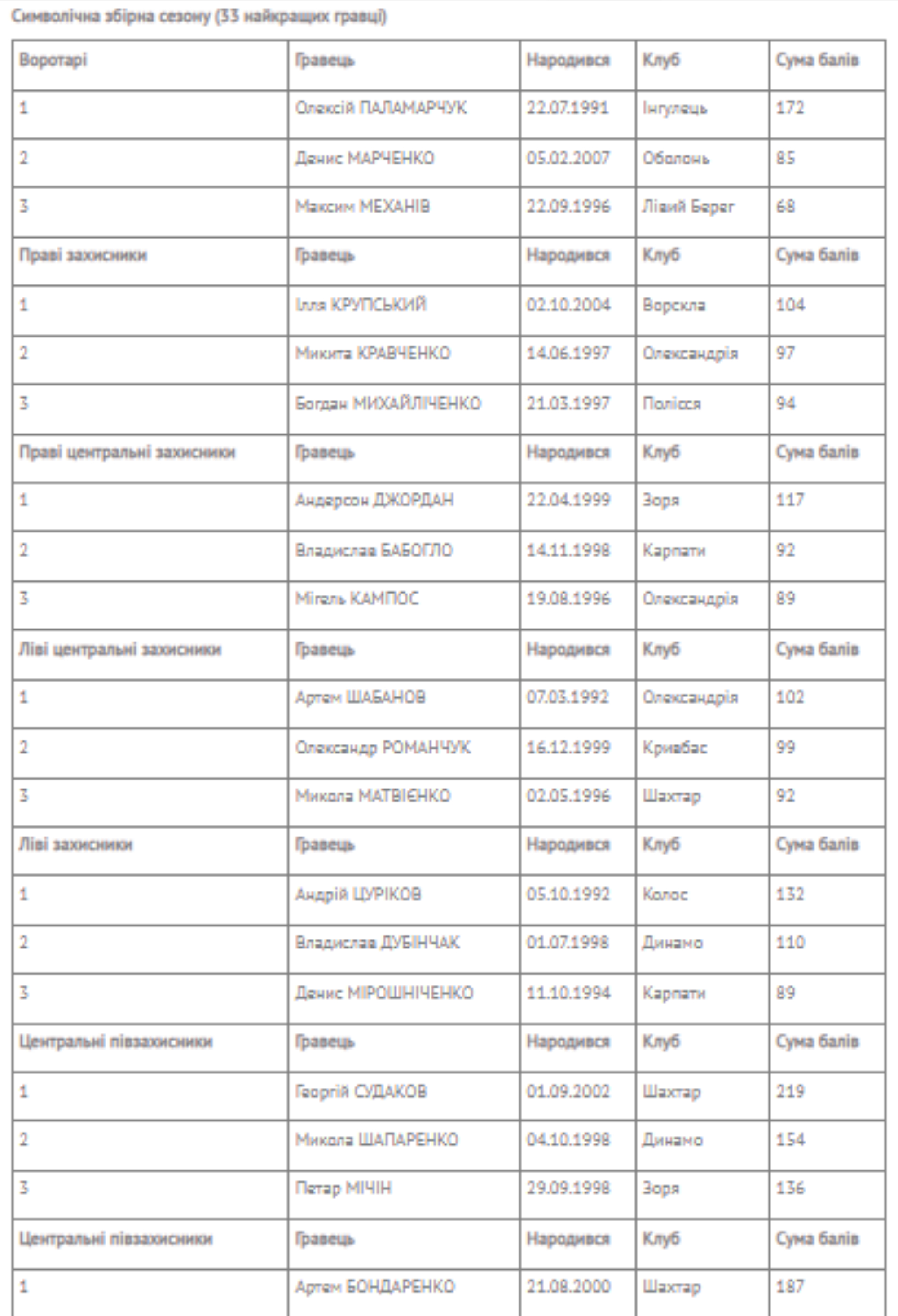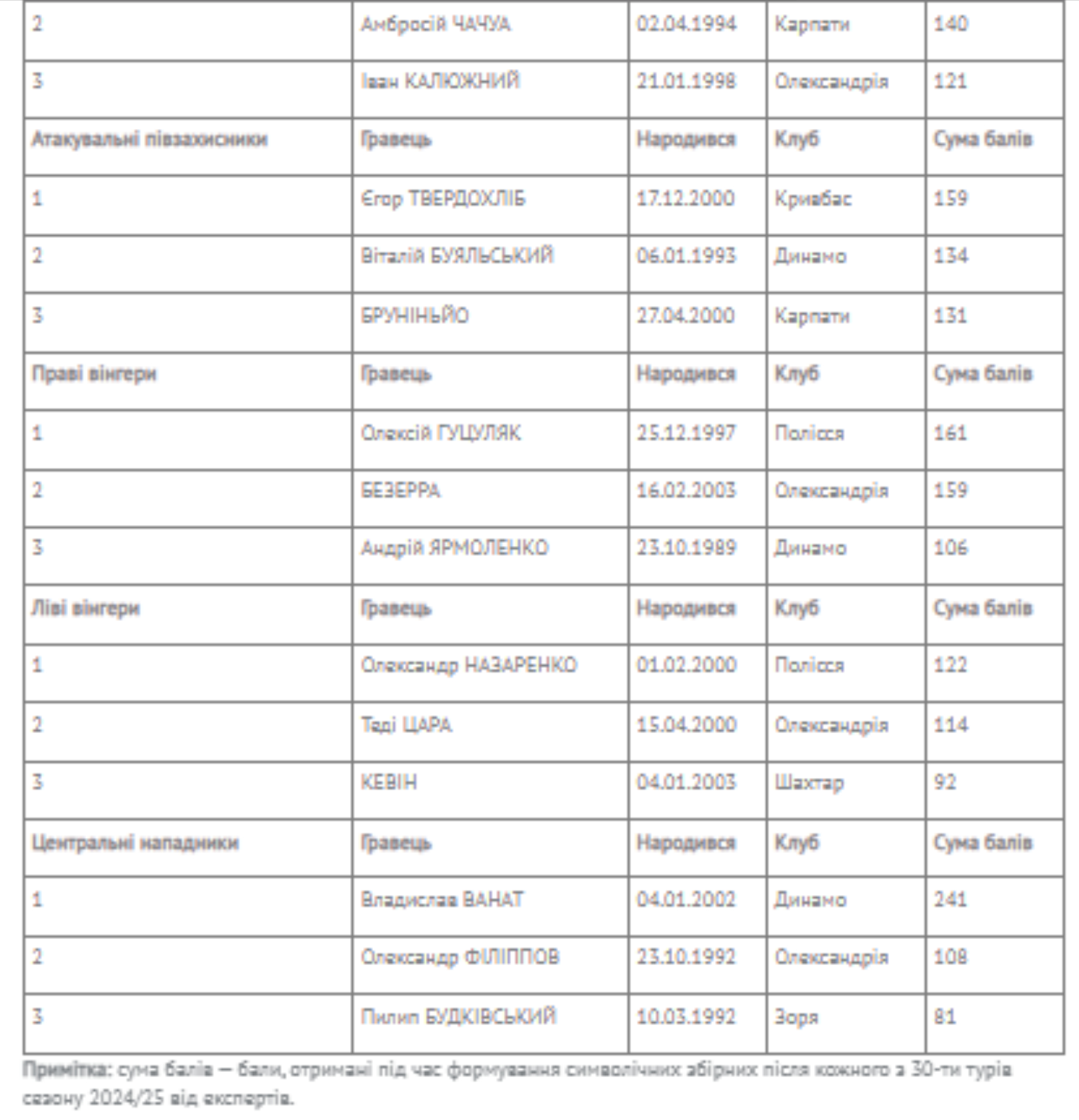 Украинская Премьер-Лига продолжает отмечать героев сезона 2024/25 и составила символическую сборную всего чемпионата УПЛ — на основе сборных туров, которые формировались вместе с ведущими, экспертами, комментаторами УПЛ ТВ и представителями ведущих спортивных СМИ Украины.