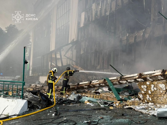 Дословно служба: "Столица подверглась очередной массированной российской атаке. В результате падения обломков БпЛА зафиксированы пожары, разрушения жилых и нежилых зданий и повреждения инфраструктуры в разных районах города. Пострадали 4 человека".