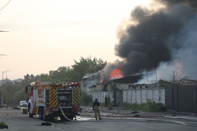 В результате массированной российской атаки ночью 10 июня в Киеве пострадали 4 человека, повреждены жилые дома, бизнес-центр, склады и железная дорога, уничтожены авто, а также возникло около 10 пожаров – некоторые из них до сих пор тушат.