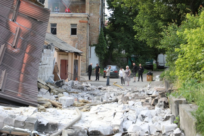 В Голосеевском – обломки упали на территории храма, повреждены верхние этажи бизнес-центра.
