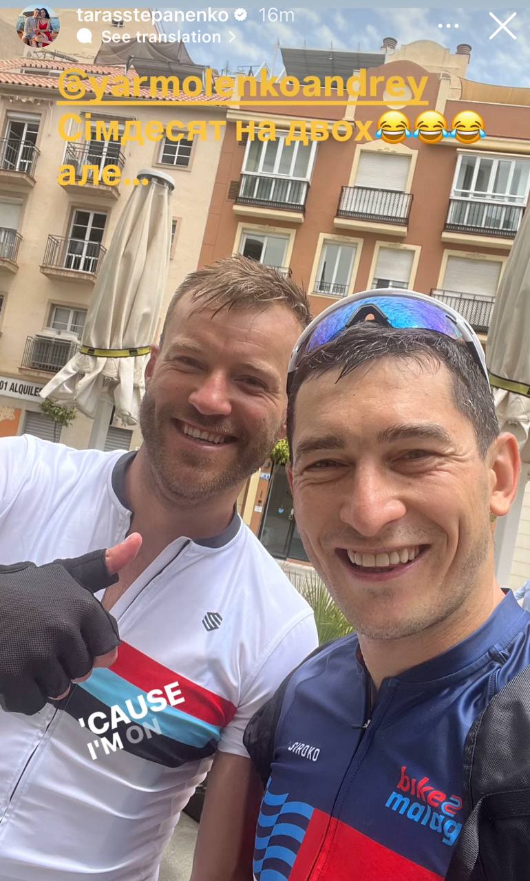 Ярмоленко и Степаненко вместе проехали 75 км на велосипедах
