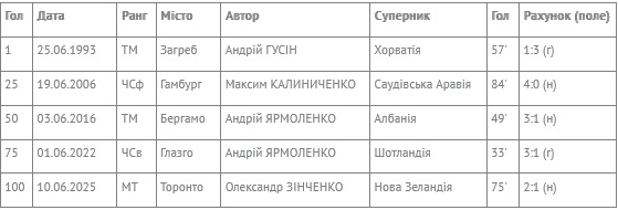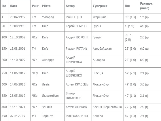 Примітка: ЧСв — відбірковий турнір чемпіонату світу; ЧЄф — фінальний турнір чемпіонату Європи; ЧЄв — відбірковий турнір чемпіонату Європи; МТ — міжнародний турнір, ТМ — товариський матч; статистика станом на 11.06.2025.