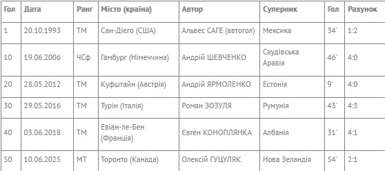 Ювілейні голи «синьо-жовтих» були і у грі зі збірною Нової Зеландії, яка стала вже 74-ю країною світу, чиї збірні зустрічалися з українською командою. Олексій Гуцуляк став автором 50-го голу збірної України на нейтральних полях, до речі, у ювілейному, 40-му матчі збірної, а Олександр Зінченко — 100-го, забитого «синьо-жовтими» саме у червні, а також 40-го голу української збірної під керівництвом Сергія Реброва.