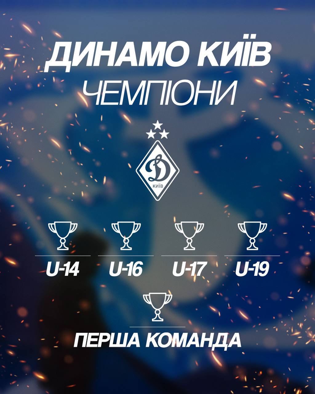 В этом сезоне чемпионат Украины выиграла основа "Динамо", а также динамовские команды четырех возрастных категорий