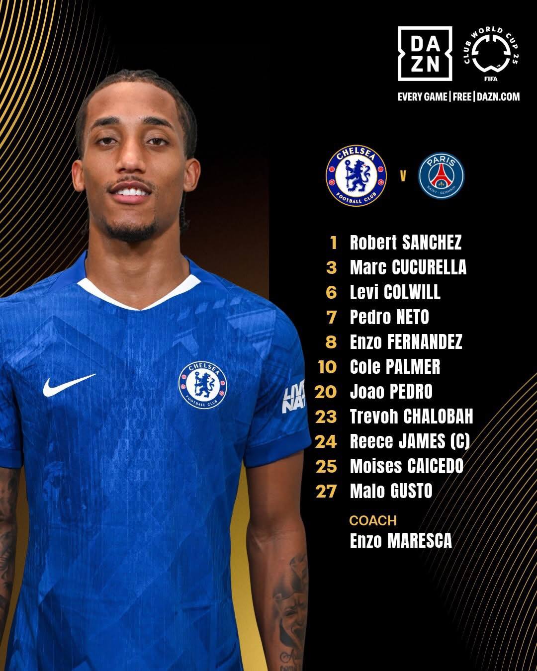 "Челси": Санчес – Гюсто, Чалоба, Колвилл, Кукурелья – Джеймс, Кайседо, Энцо – Палмер, Жоао Педро, Нету