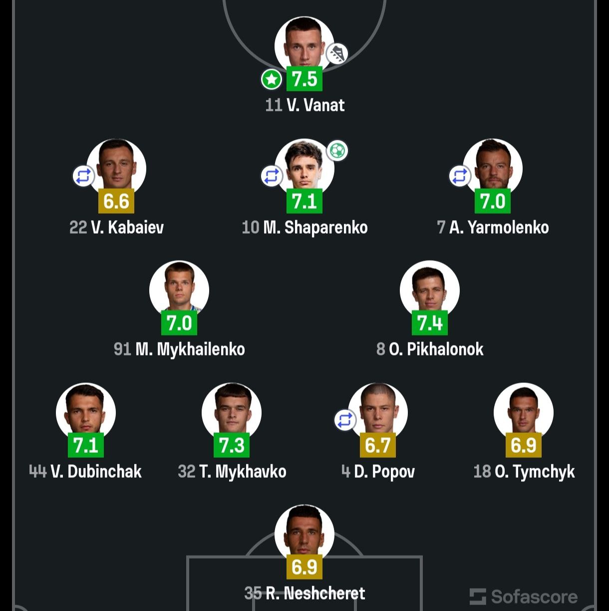 Лучшим игроком поединка стал форвард киевлян Владислав Ванат (7,5), неподалеку расположились Александр Пихаленок (7,4) и Тарас Михавко (7,3).