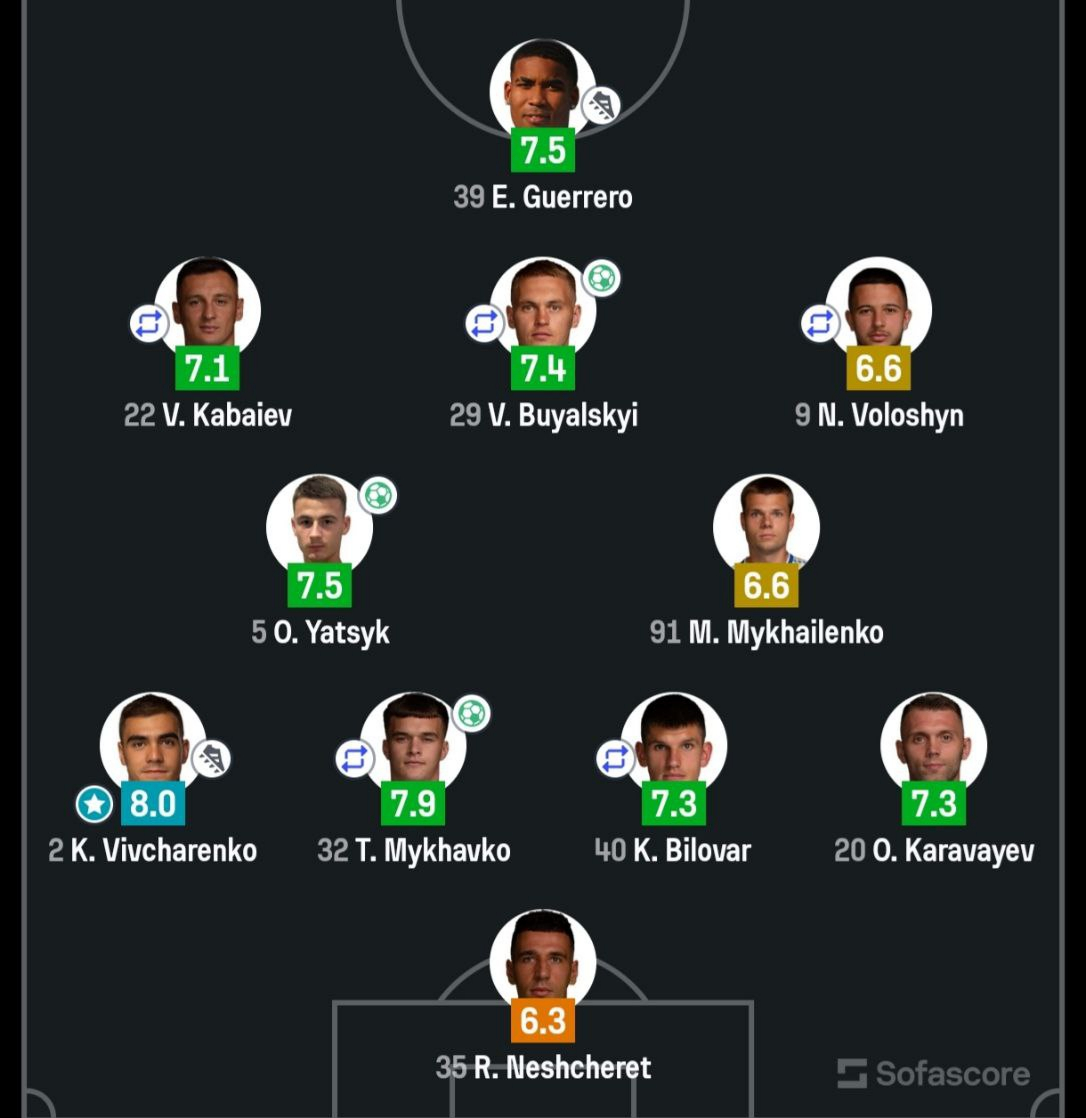 Футболисты "Динамо" получили оценки от SofaScore за матч против "Руха". Вивчаренко признан лучшим игроком поединка
