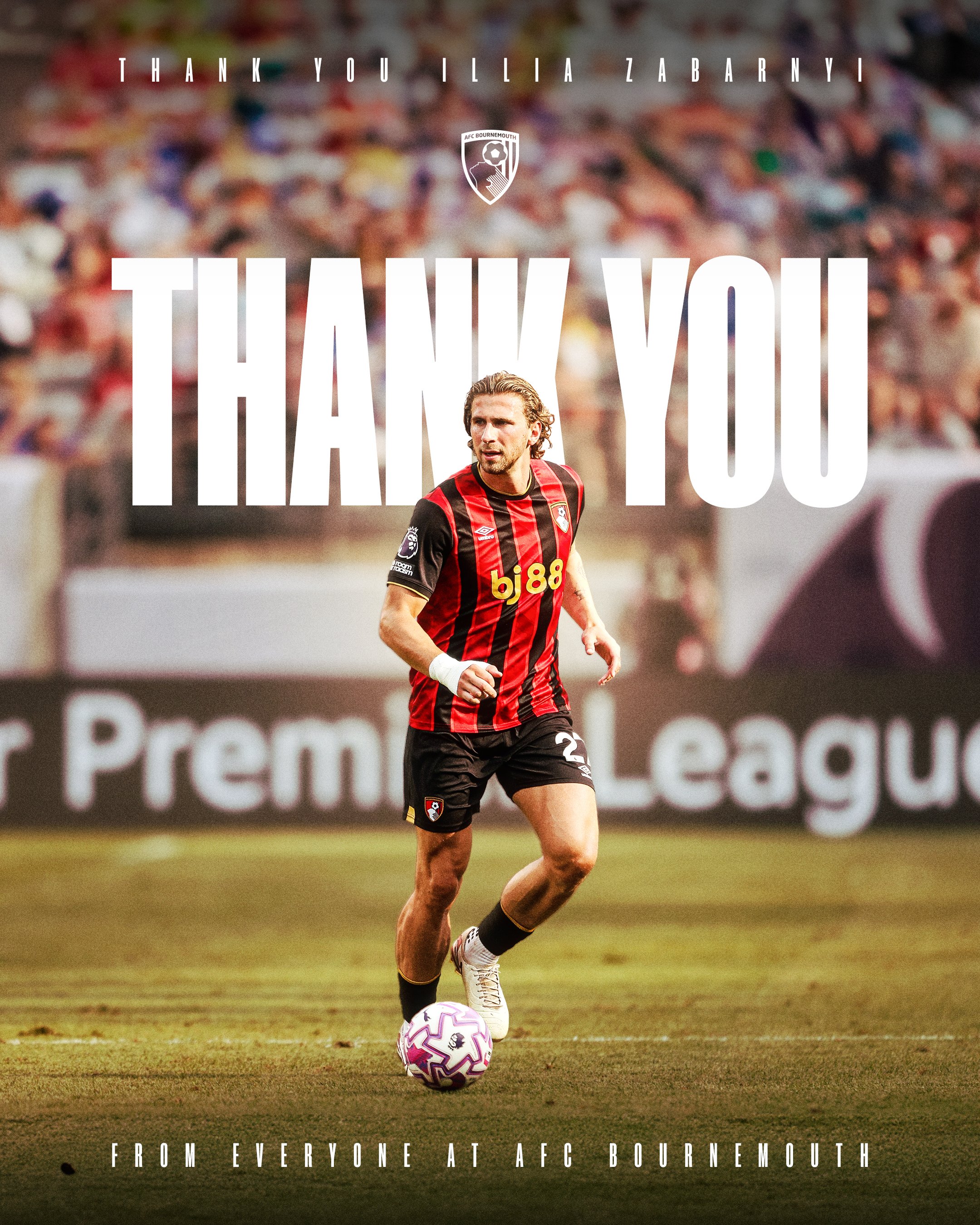 "Все в "Борнмуте" благодарят Илью за преданность и вклад, которые он показал в нашем клубе. Желаем тебе всего лучшего в будущем, Заба", - написали в английском клубе.