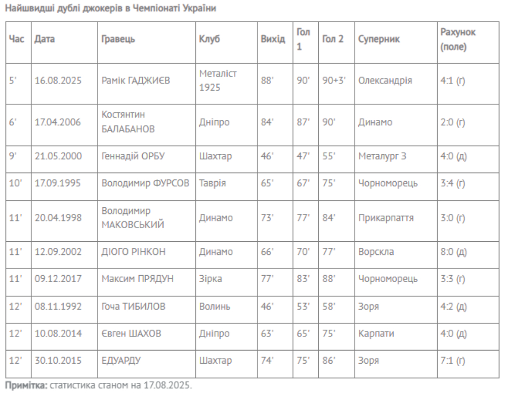 При этом Гаджиев отметился двумя голами уже через 5 минут после своего появления на поле и стал автором самого быстрого дубля среди выходивших на замену игроков в истории чемпионата Украины.