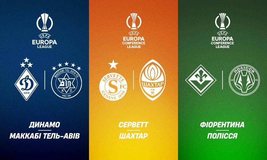 Первыми на поле выйдут "Динамо" и "Полесье". Начало их матчей с израильским «Маккаби» (Тель-Авив) и итальянской «Фиорентиной» соответственно – 21:00 по киевскому времени. Трансляция из польского Люблина – на «2+2», из Флоренции – на «Киевстар ТВ».