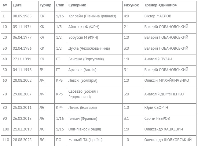 Ювілейні домашні перемоги «Динамо» у єврокубках