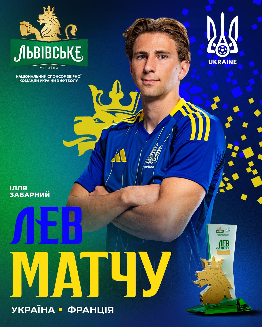Защитник сборной Украины Илья Забарный стал "Львом матча" в поединке против Франции.