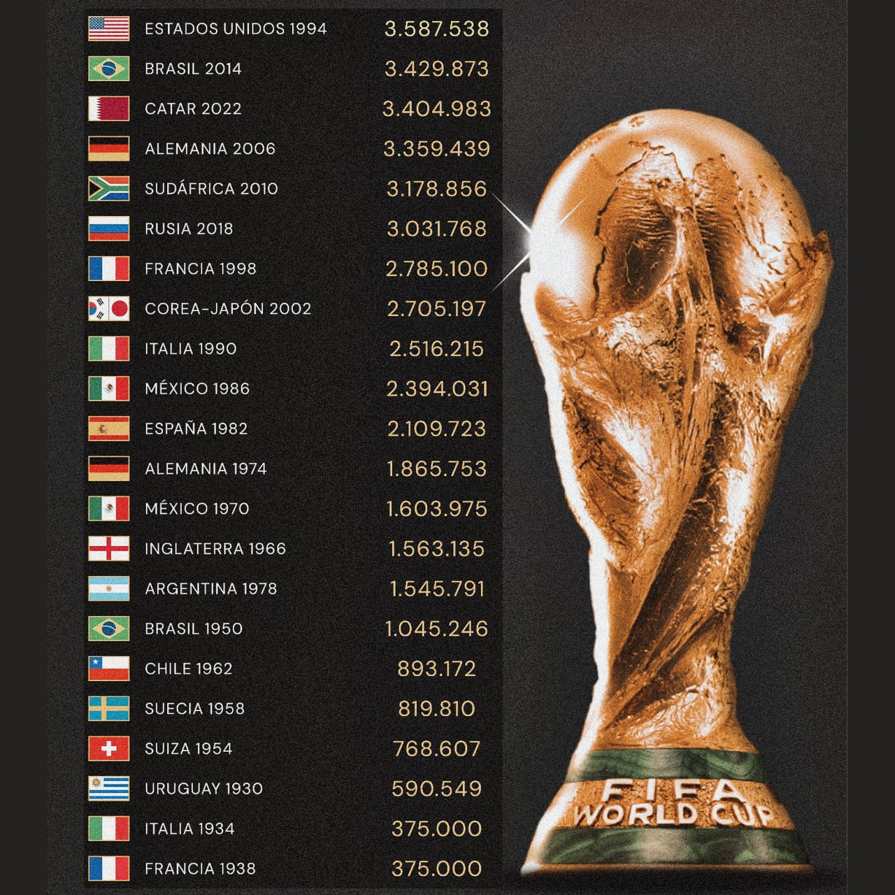 На втором месте расположилась Бразилия-2014 (3,4 млн), а на третьем – Катар-2022 (3,4 млн).