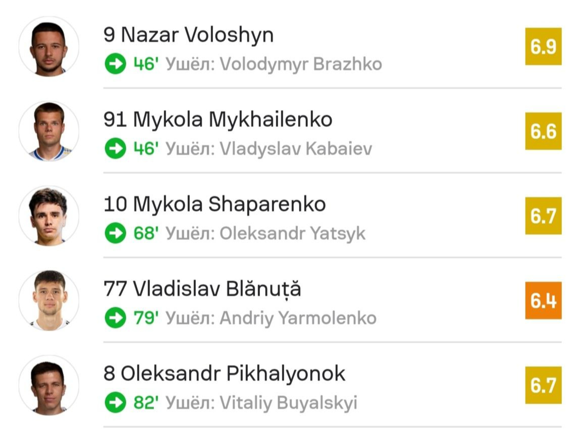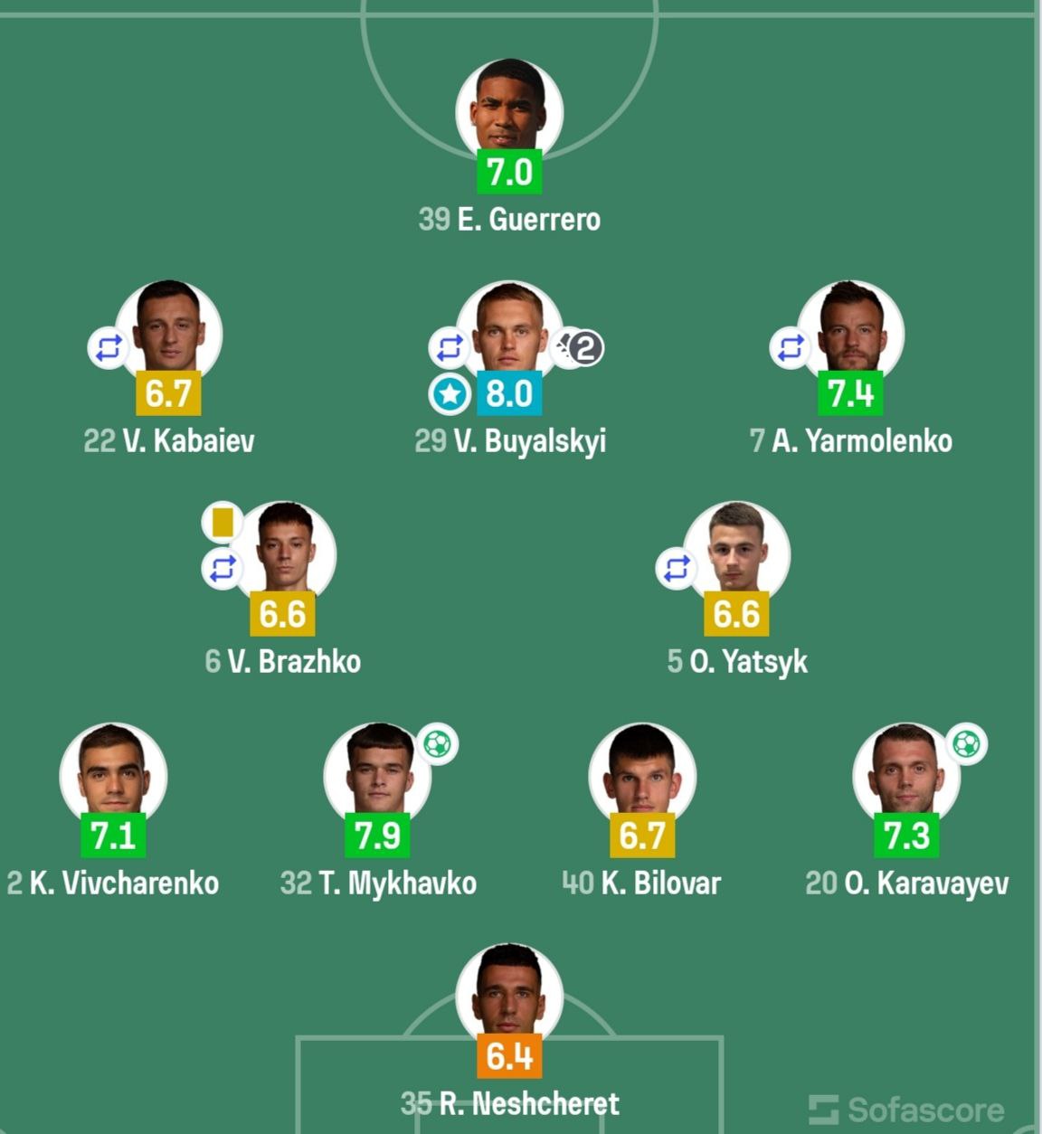 Самую высокую оценку в команде Шовковского получил Виталий Буяльский – 8,0.