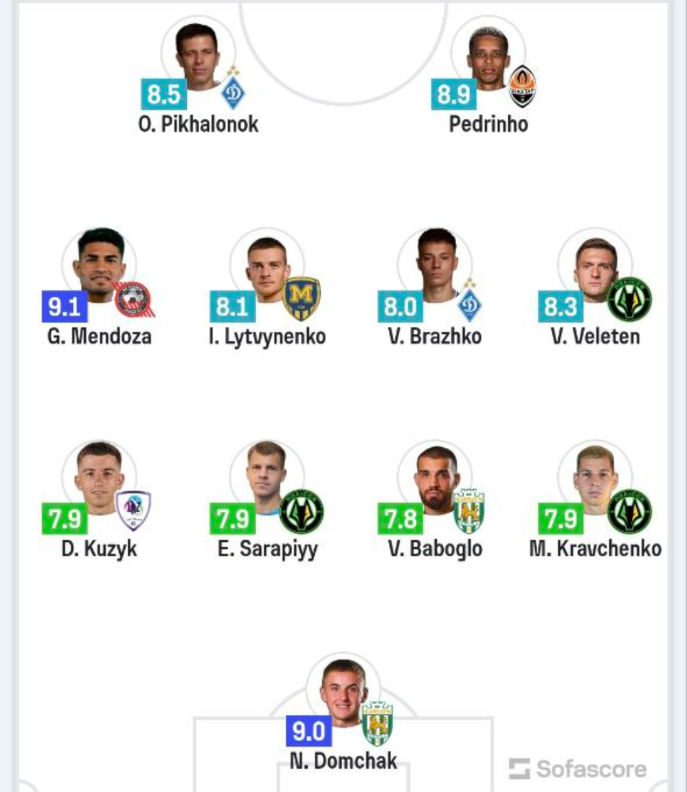 Два игрока "Динамо" вошли в символическую сборную 6-го тура УПЛ по версии SofaScore