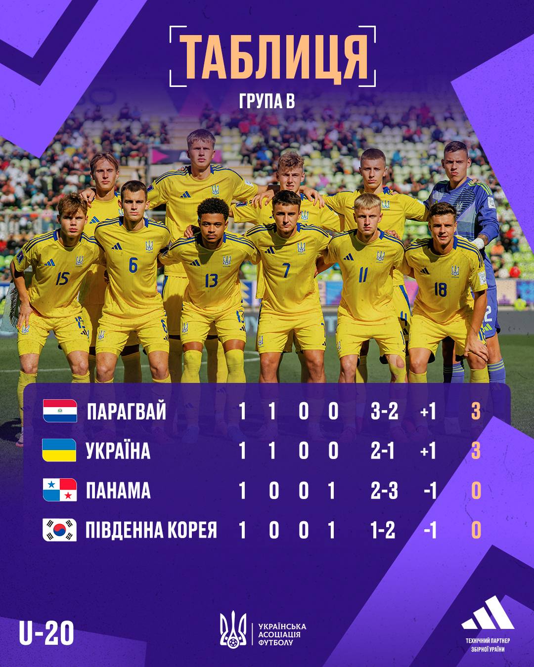 Сборная Украины на втором месте. Турнирная таблица группы В после первого тура ЧМ-2025 U-20