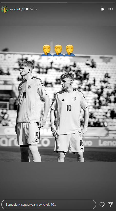 Он опубликовал фото в черно-белых цветах в форме сборной Украины и добавил три эмодзи, на которых рука закрывает лицо.
